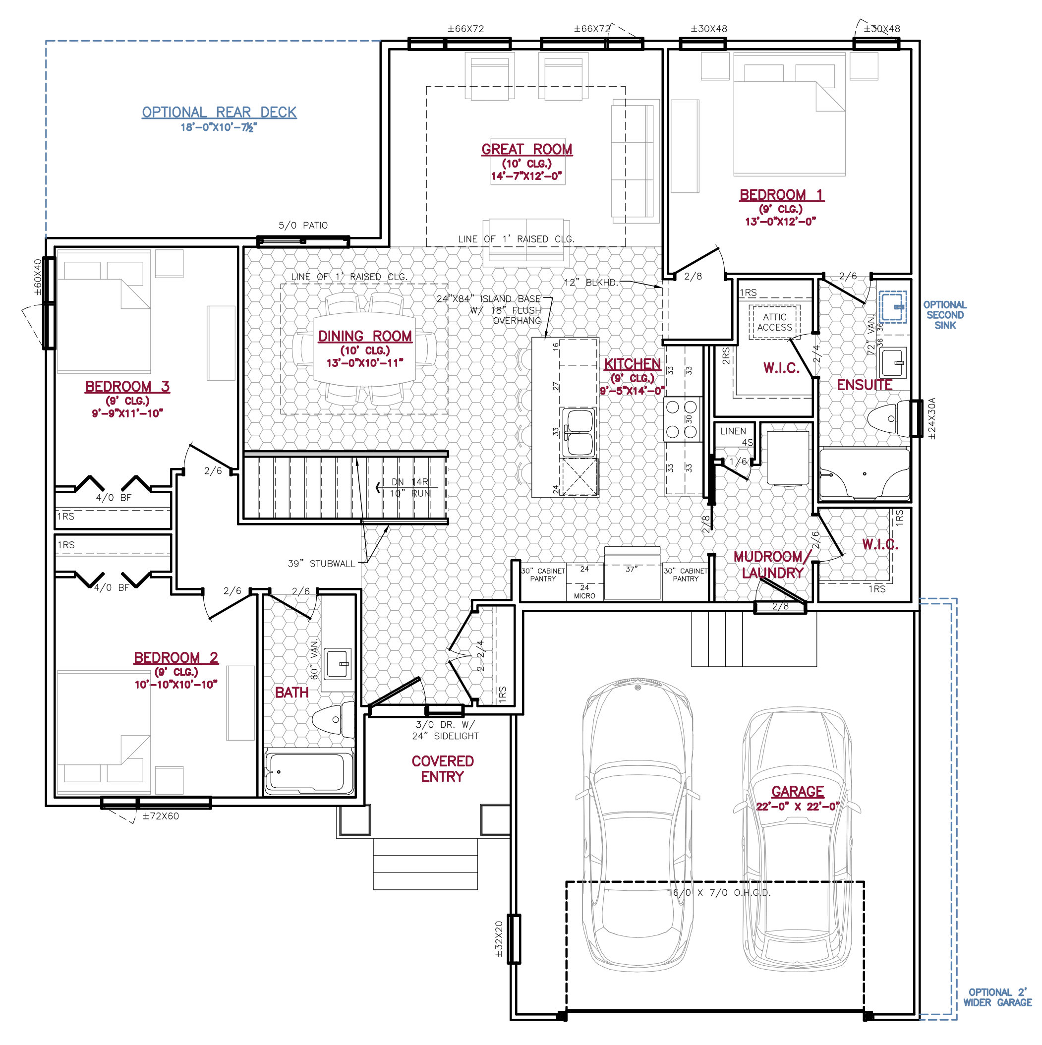 These elevations are subject to change and these images do not form part of a contract. All illustrations are artist’s conception and may vary. Room dimensions are approximate. Windows and room sizes may vary with elevations. Mechanical equipment location and placement subject to change as required by building code and at discretion of builder. Furniture outlines for purpose of visualizing room layout only, furniture not included. Kensington Homes reserves the right to change material or specifications without notice.