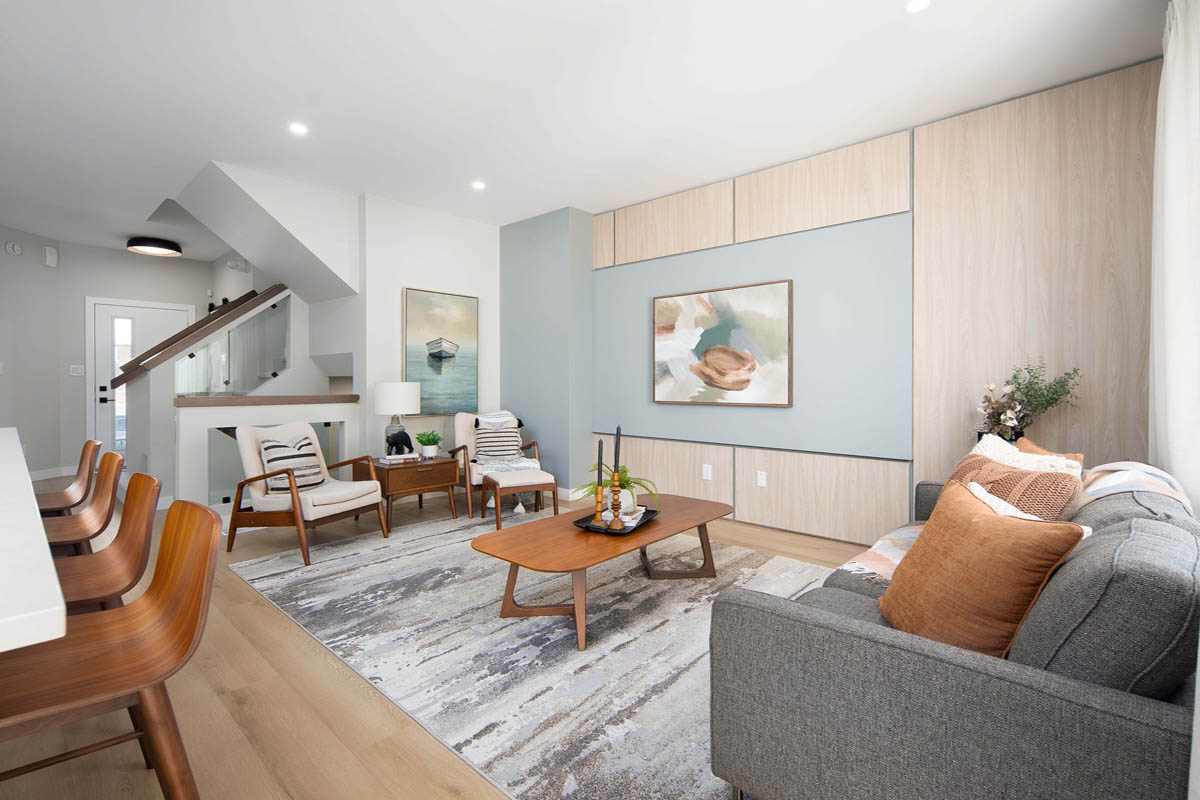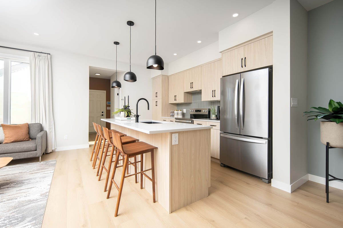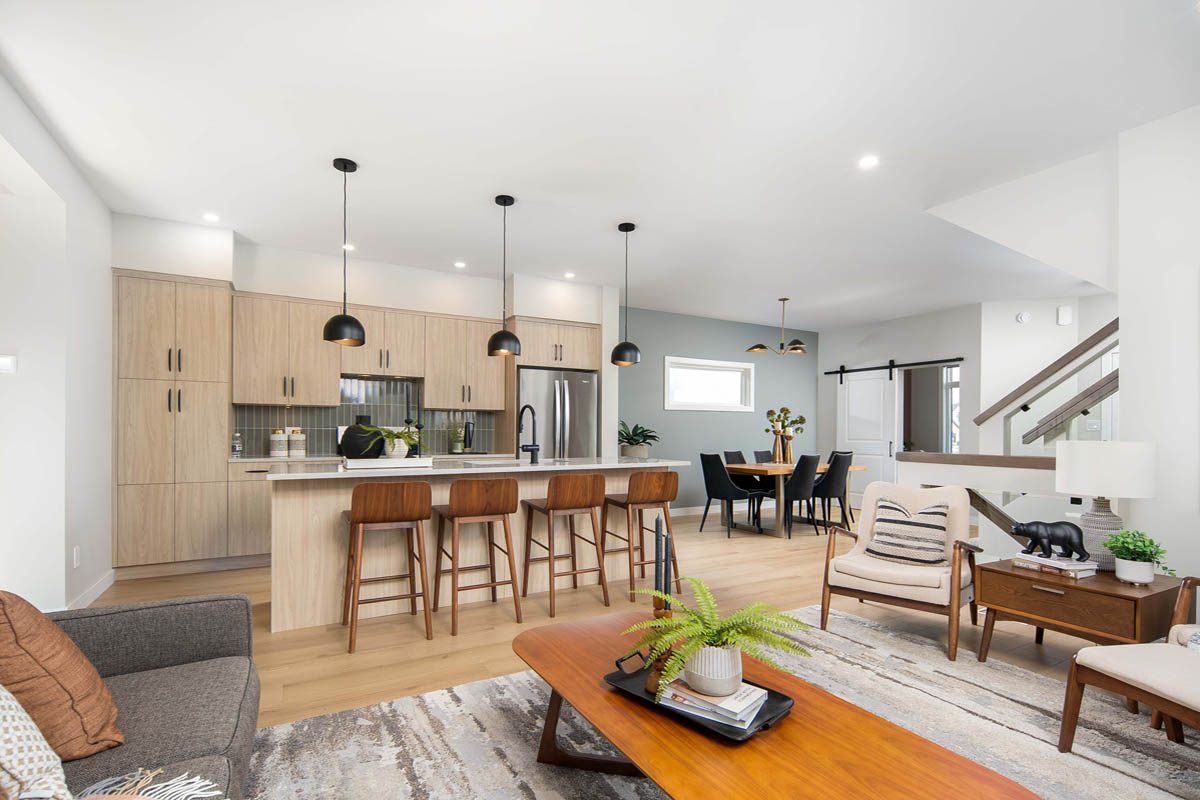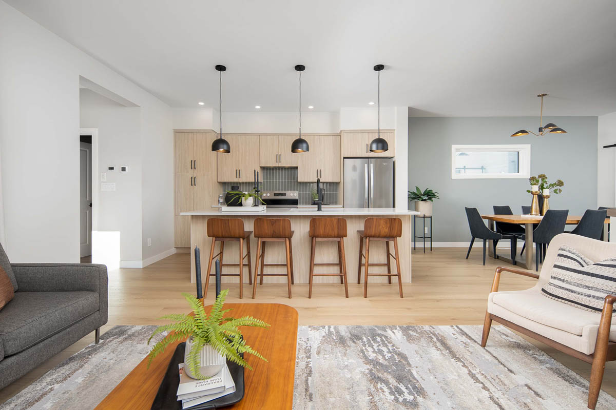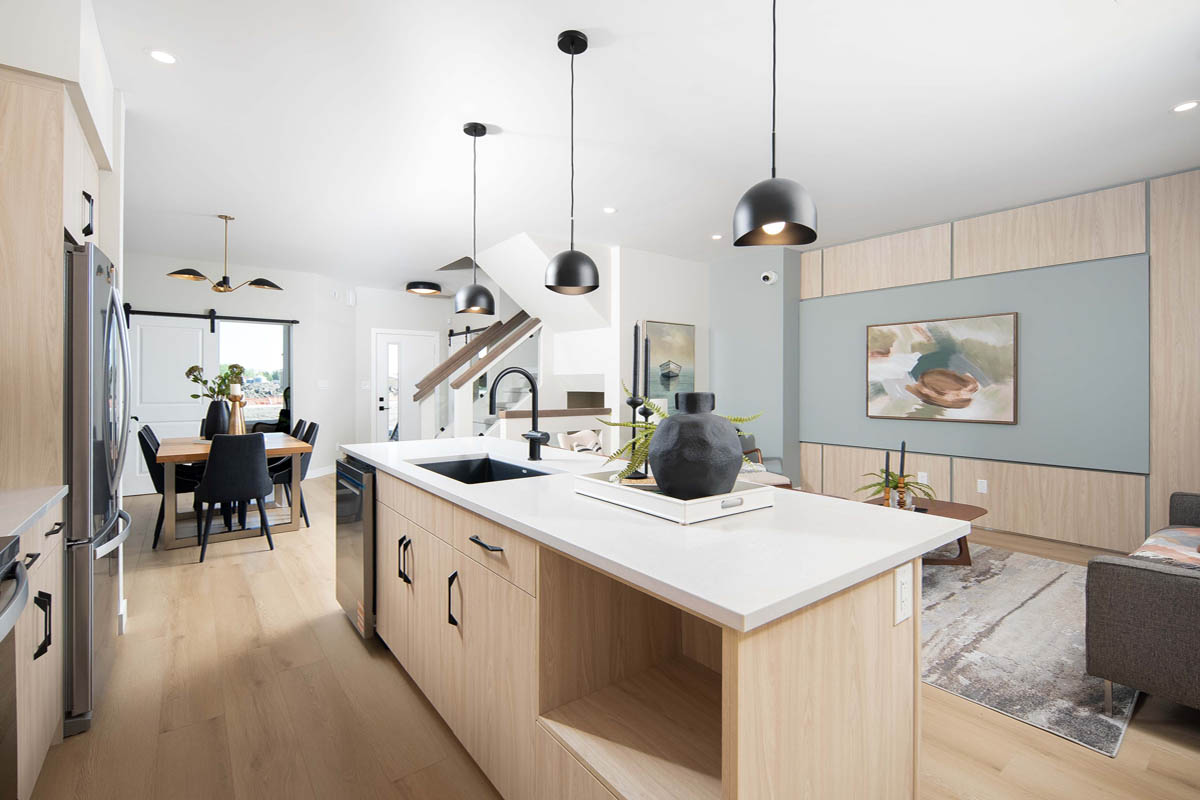 - Open concept kitchen with quartz countertops & soft close cabinets