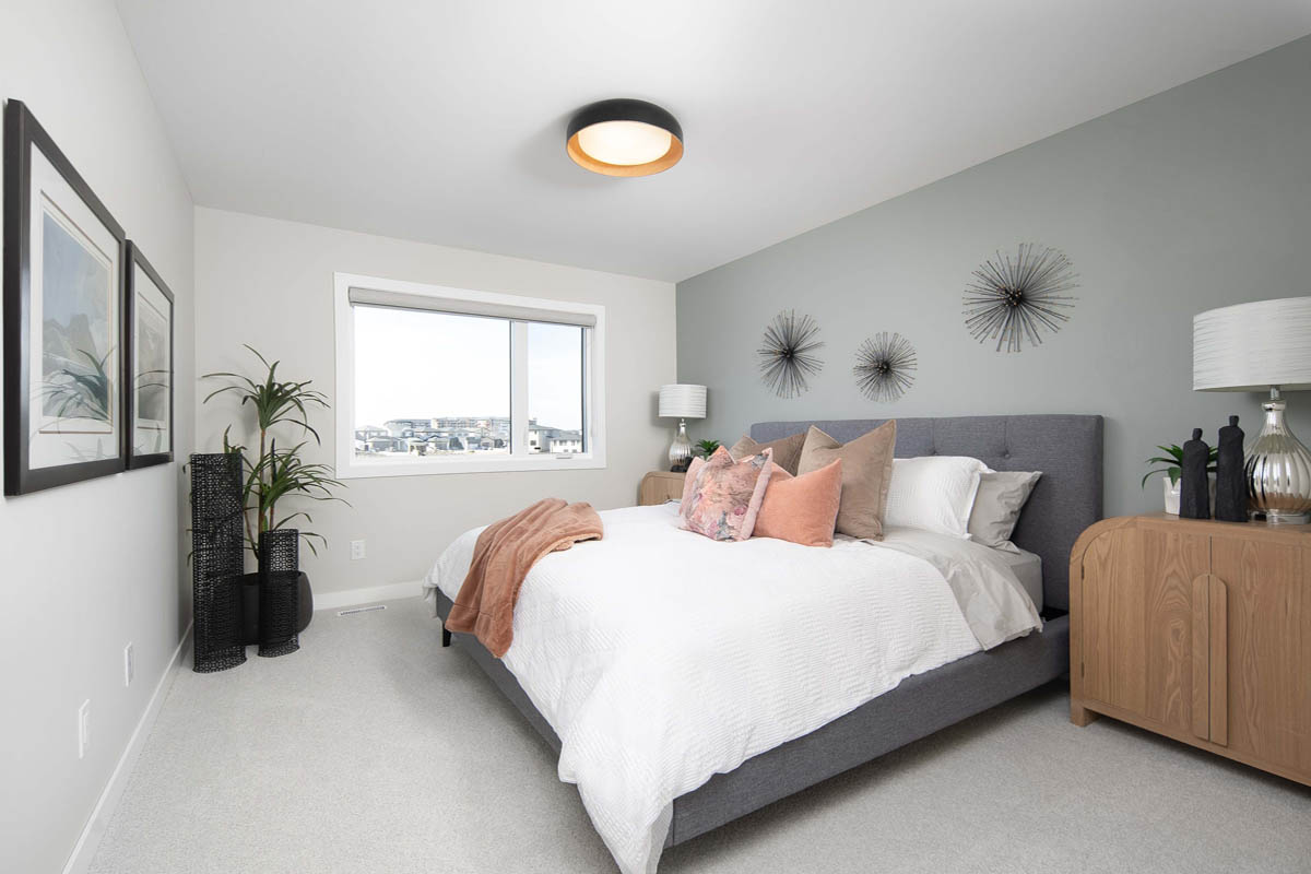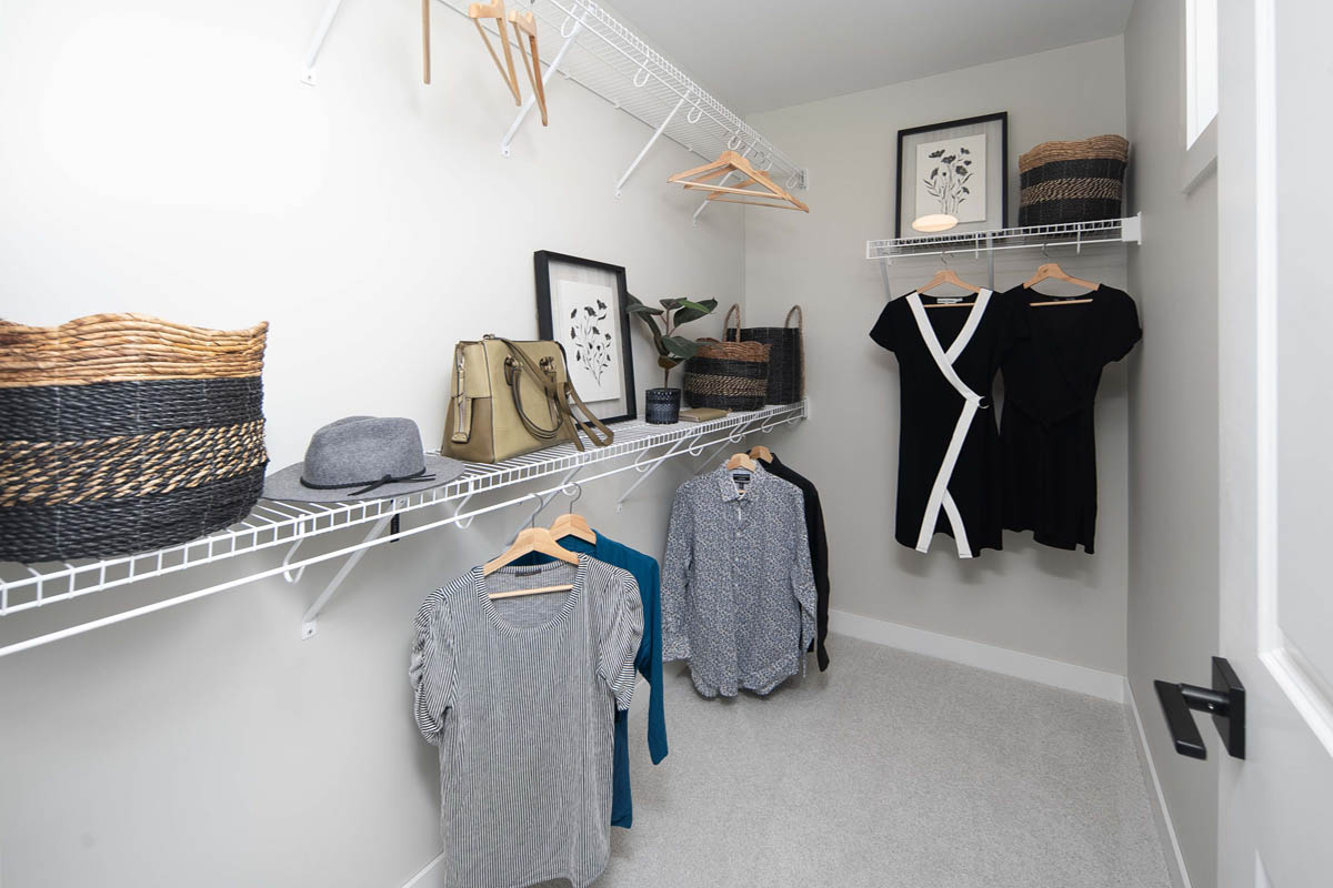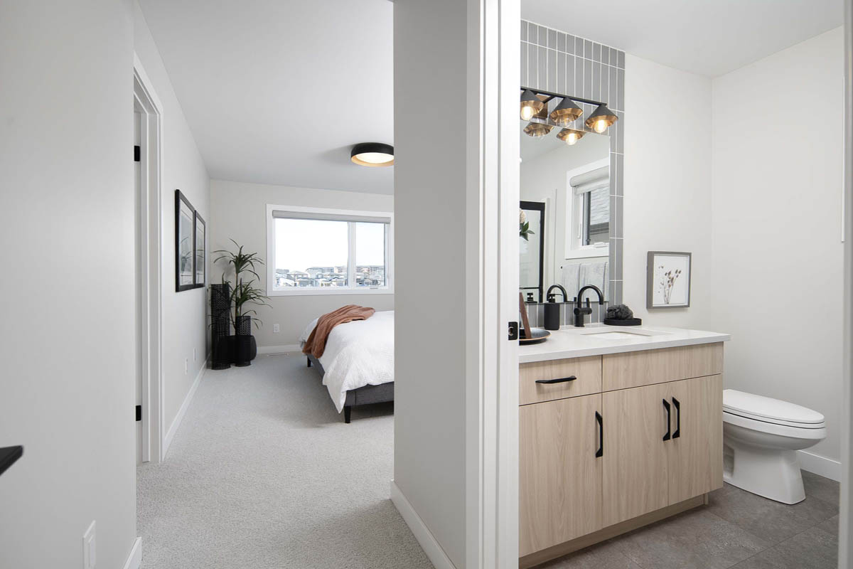 - Primary bedroom with walk in closet & ensuite with tile backsplash at sink