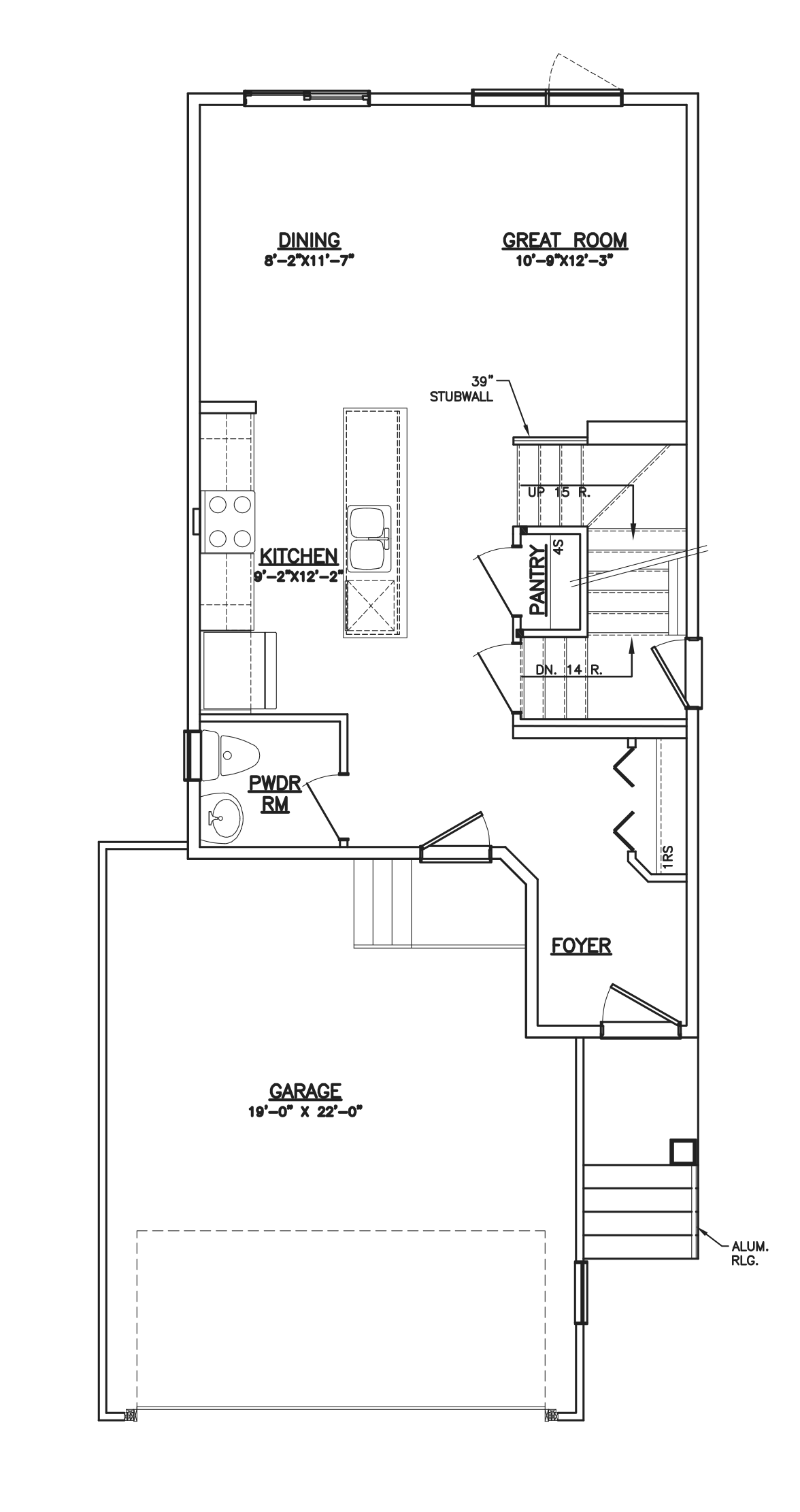 - 19′ x 22′ double car garage