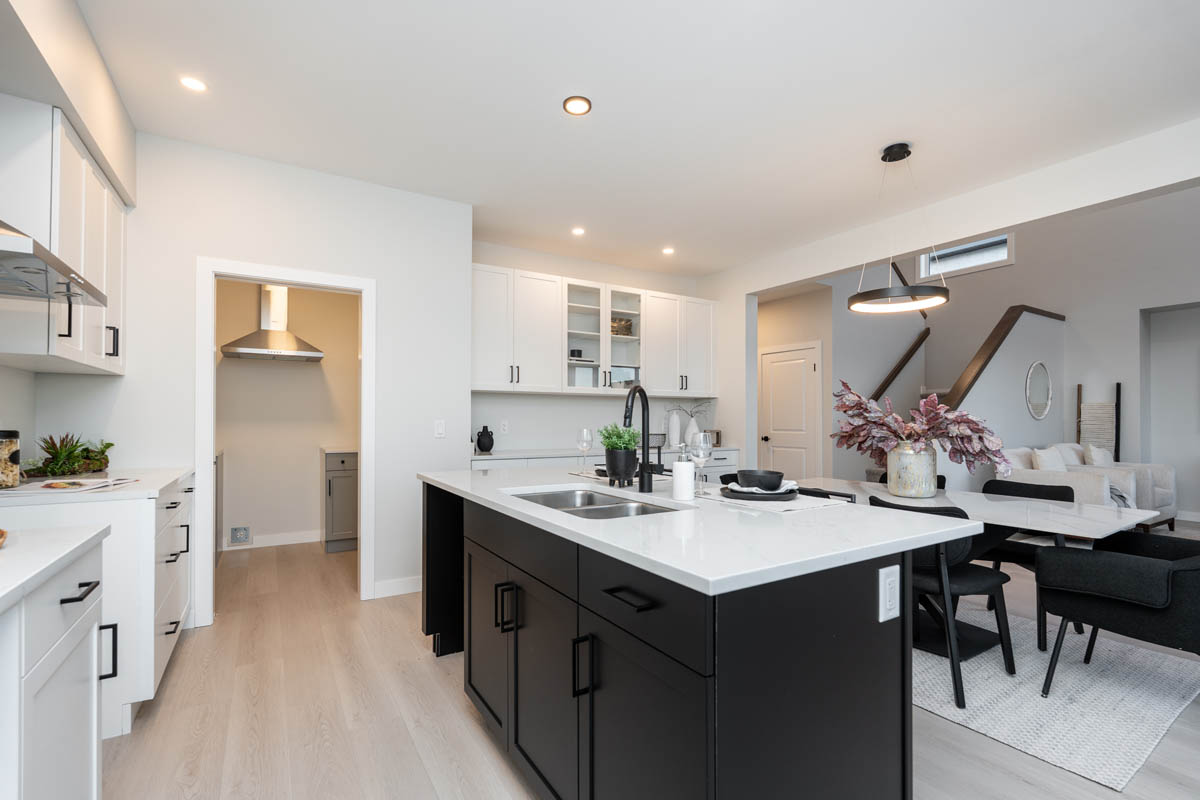 - Quartz countertops in kitchen, spice kitchen, main floor bathroom, and ensuite