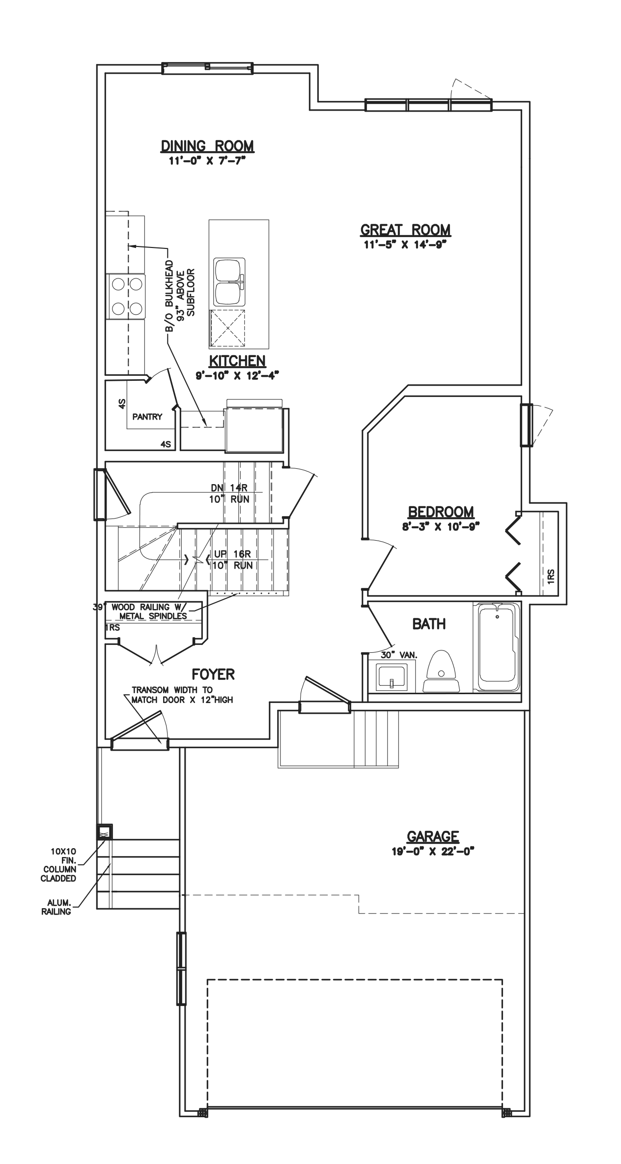 - Side entry to basement stairway